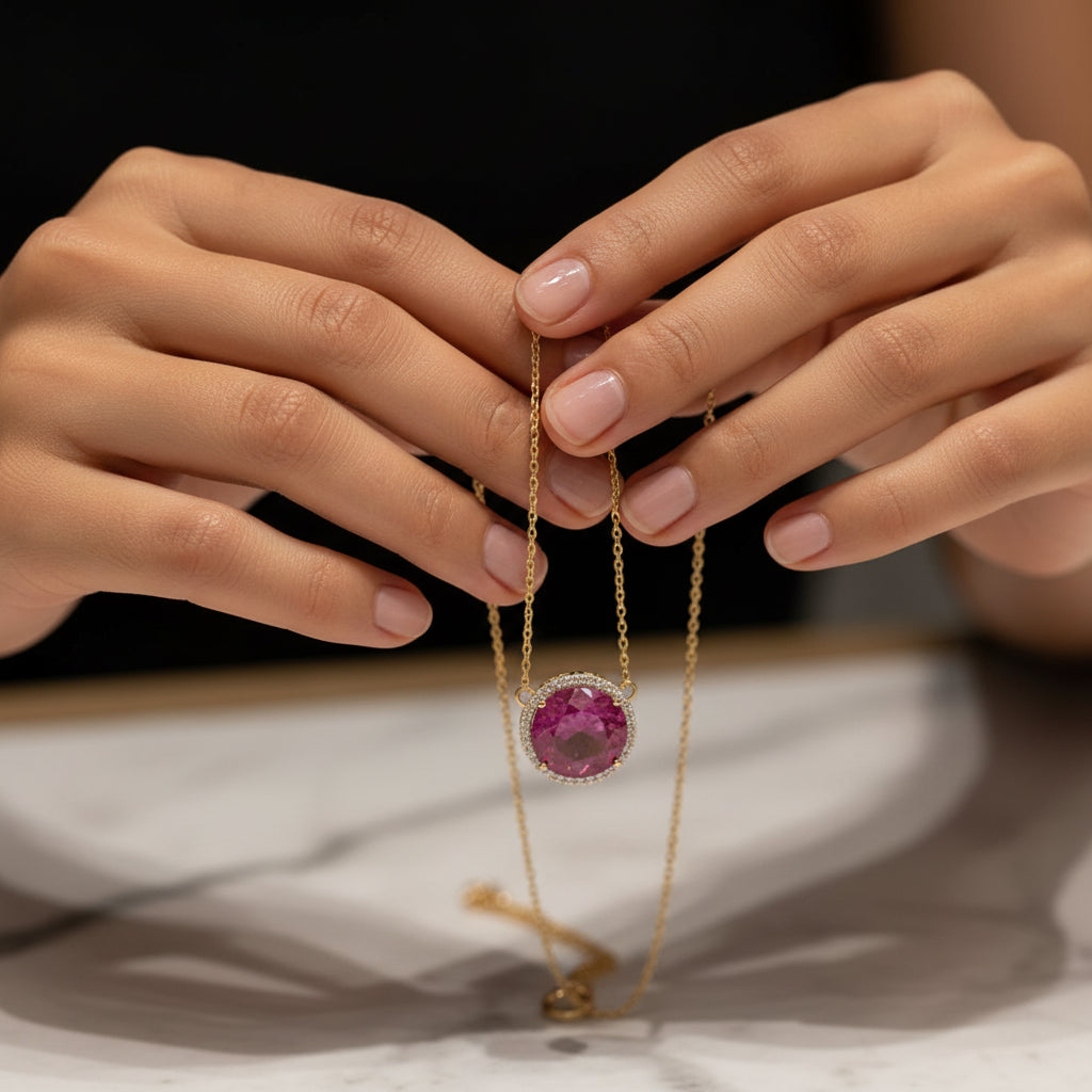 This exquisite necklace features a stunning 18.18-carat natural ruby, complemented by 0.75 carats of natural diamonds, all set in luxurious 14k yellow gold. Expertly crafted, it combines vibrant color and brilliance, making it a timeless piece that enhances any elegant ensemble. Perfect for those who appreciate fine gemstones and superior craftsmanship.