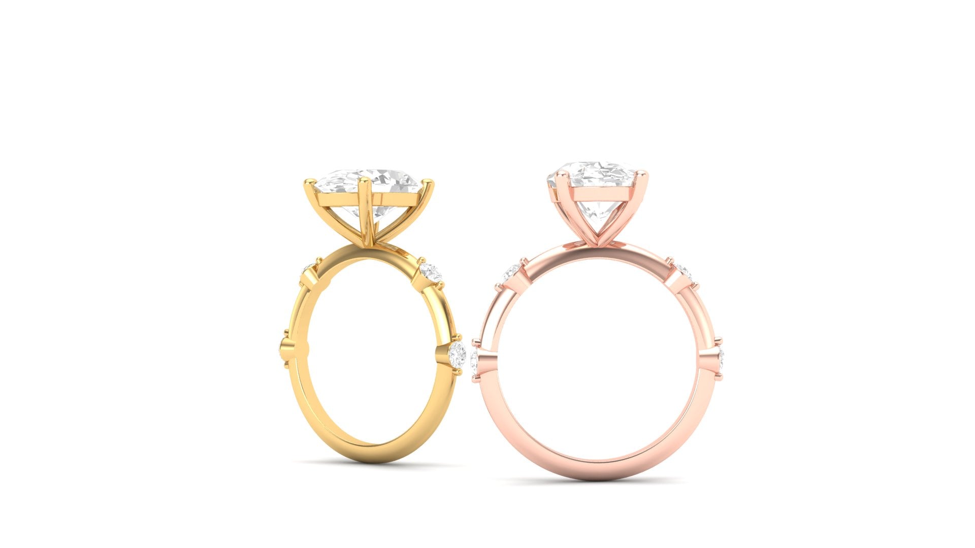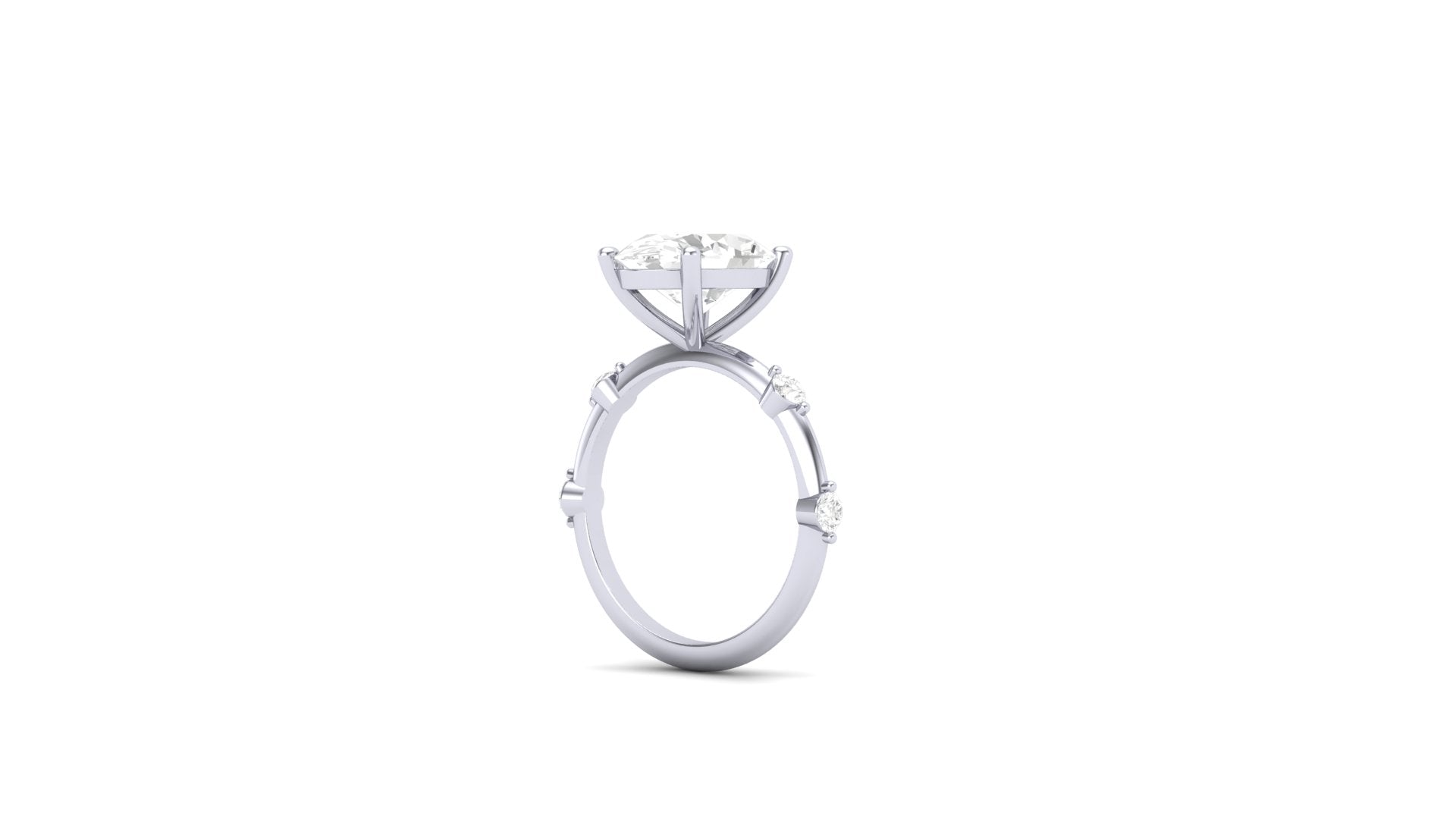 3.00 ct Oval Cut Center Lab Grown Diamond | Color: E | Clarity: VVS | 0.25 ct Lab Grown Side Diamonds. | Designer Ring.